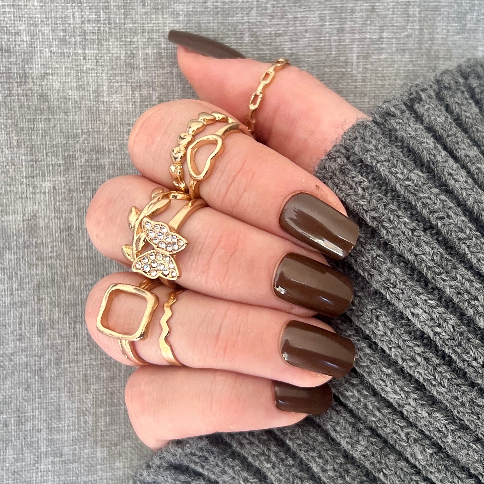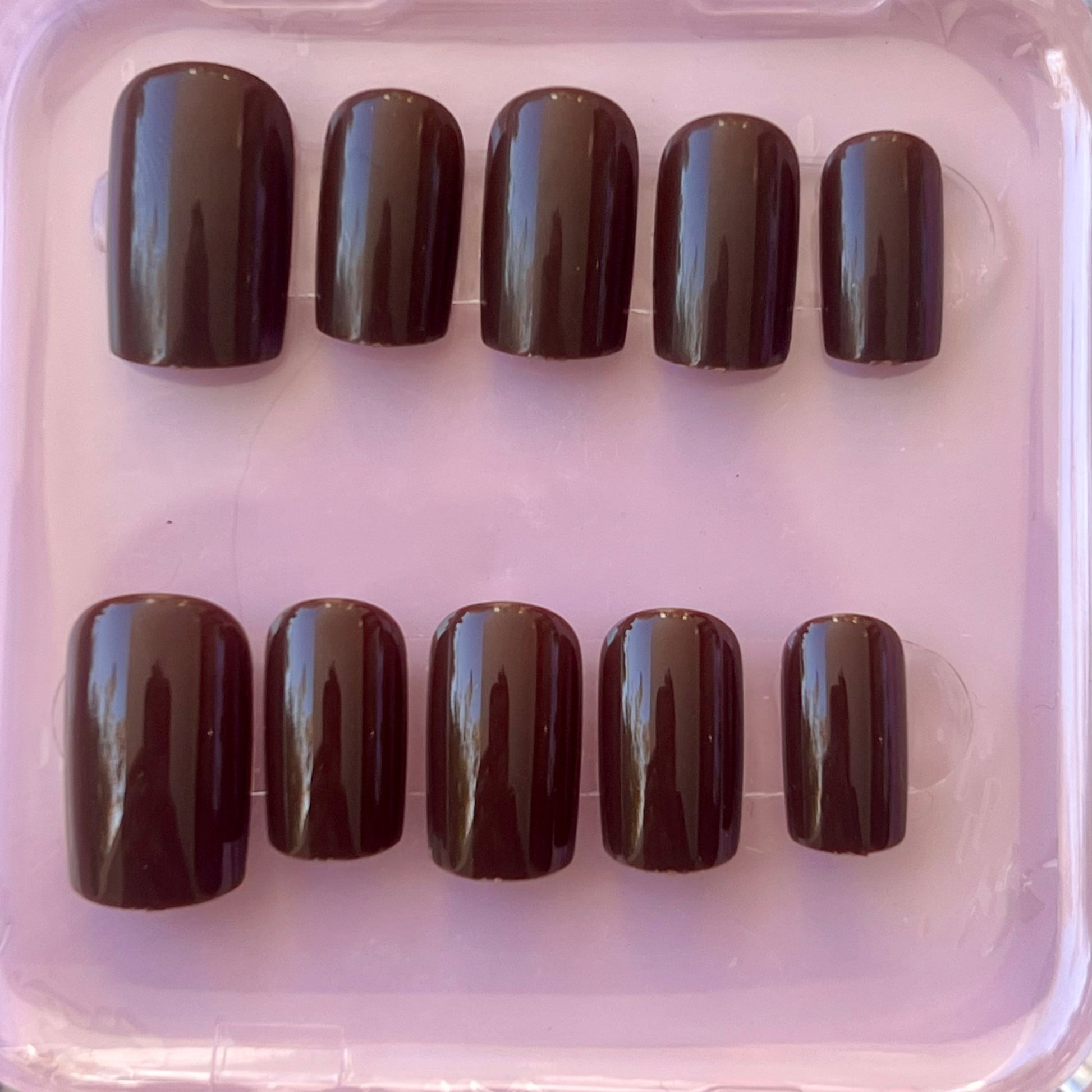 Nos press-on nails Chocolat Brillant offrent une manucure lisse, brillante et tendance, idéale pour les saisons automne/hiver ou pour un look élégant au quotidien.